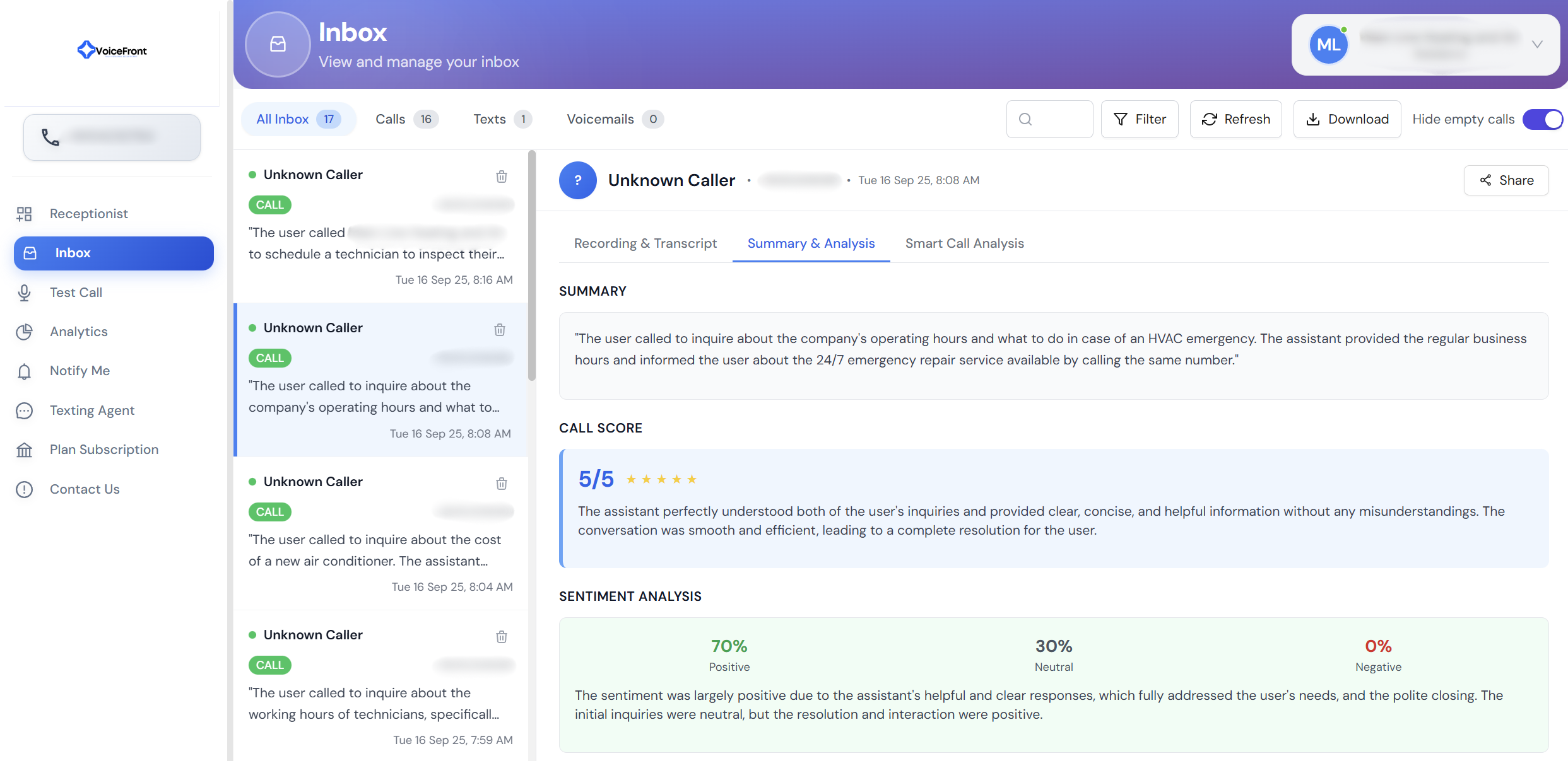 VoiceFront’s AI receptionist books jobs or appointments directly into your calendar/CRM.